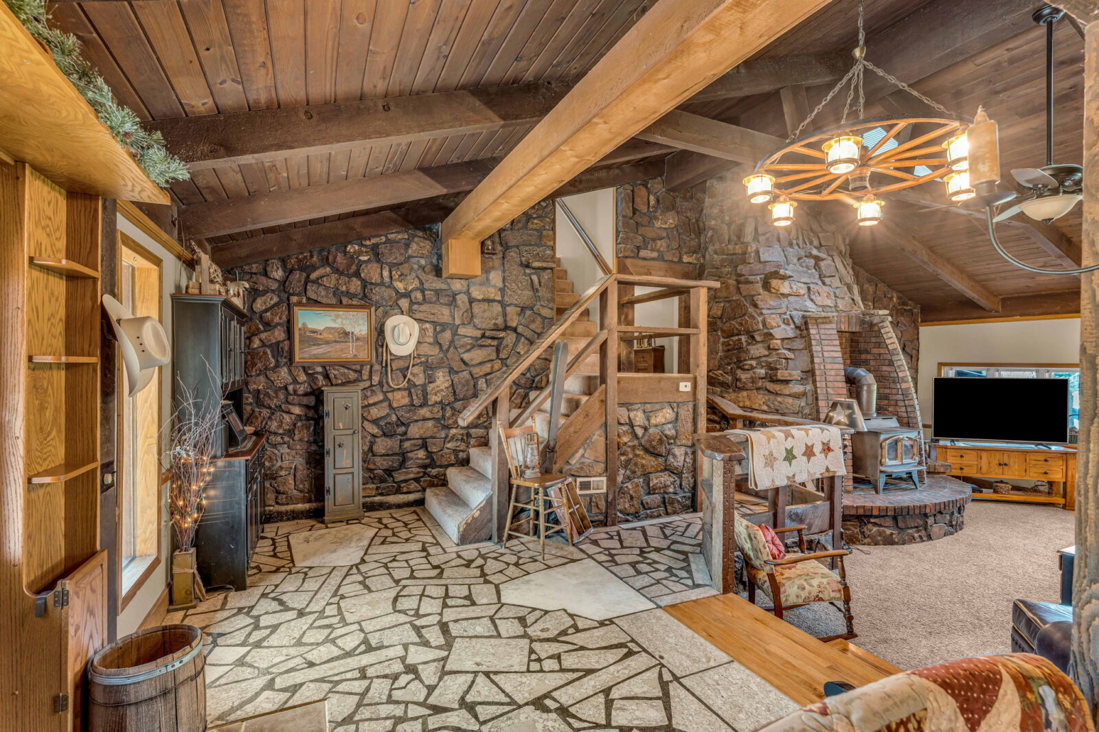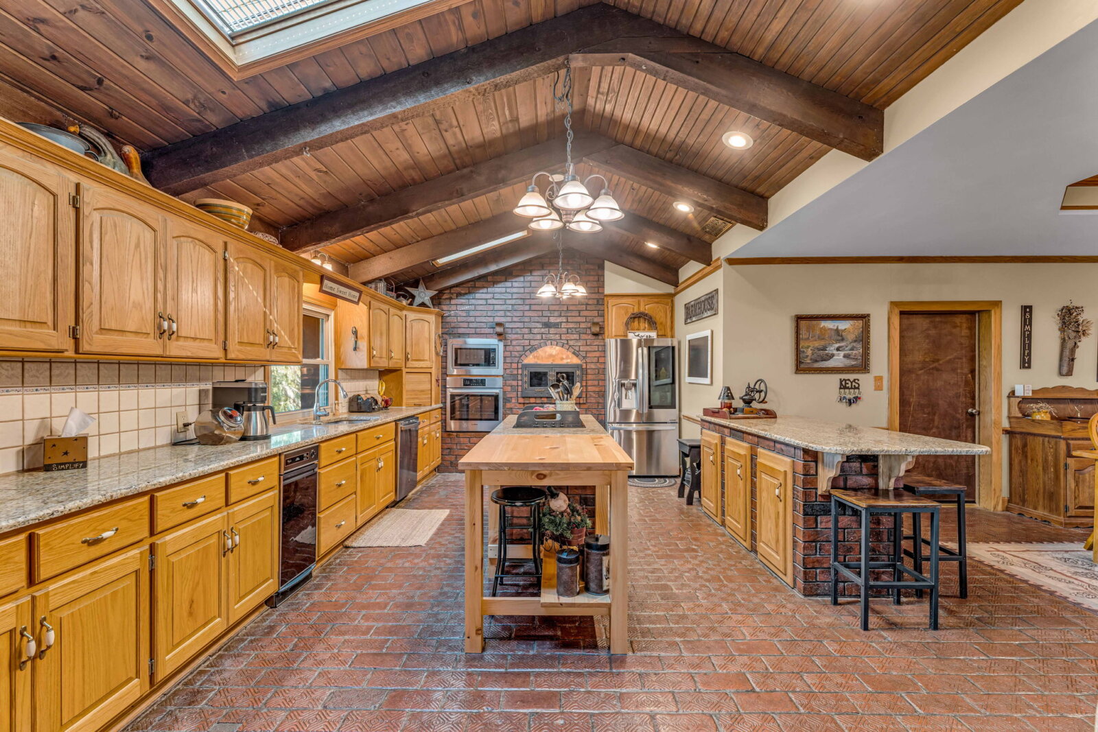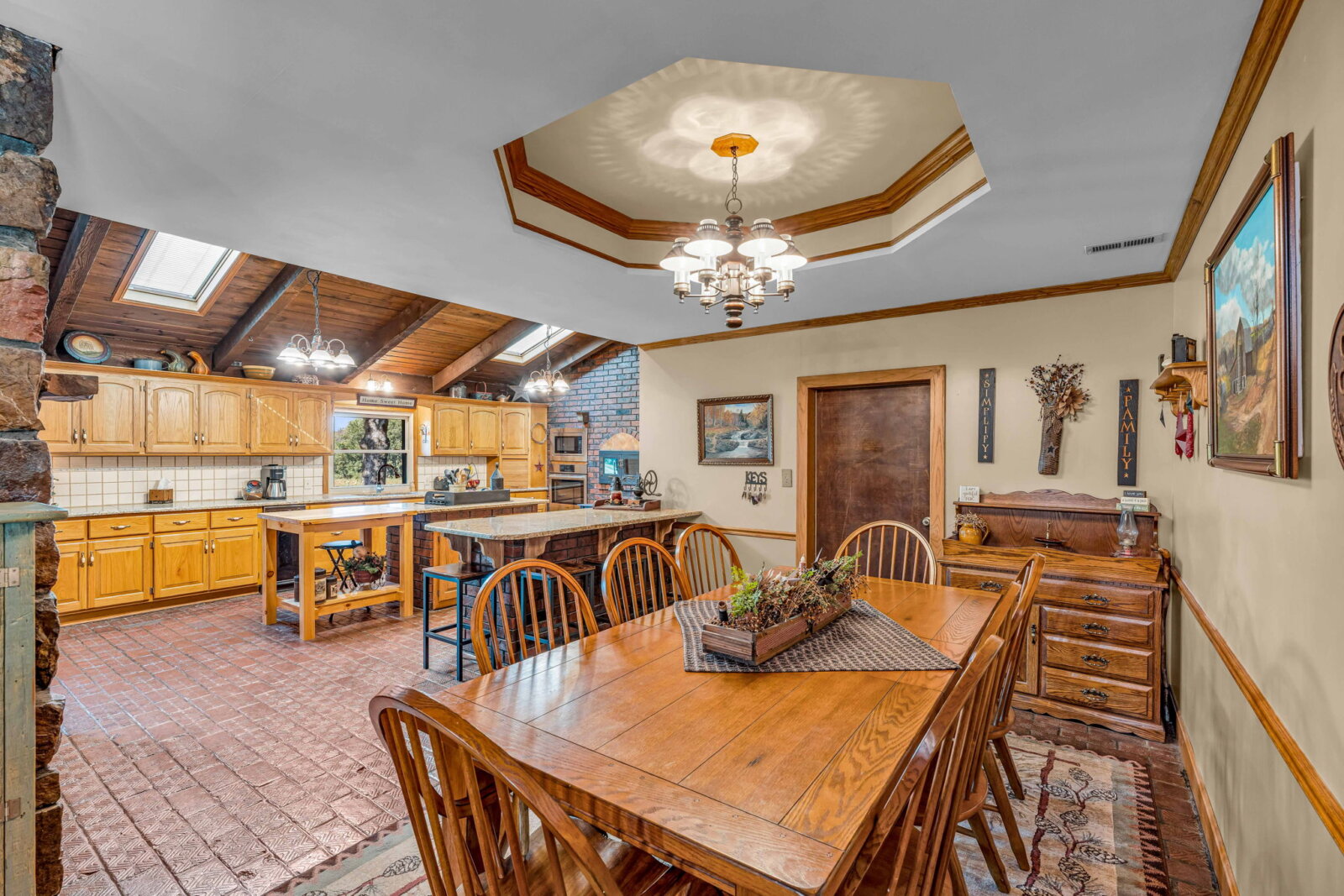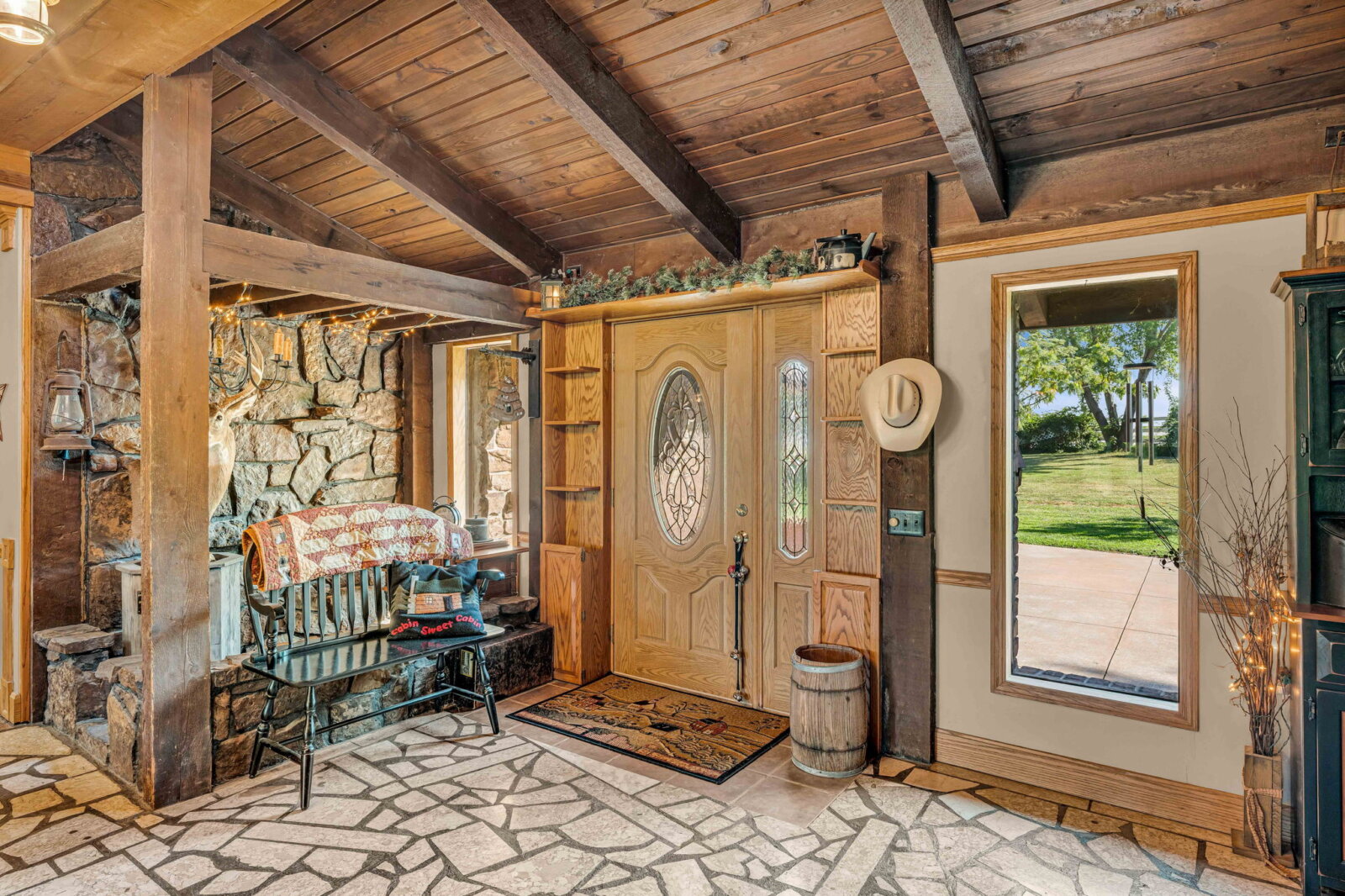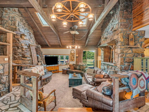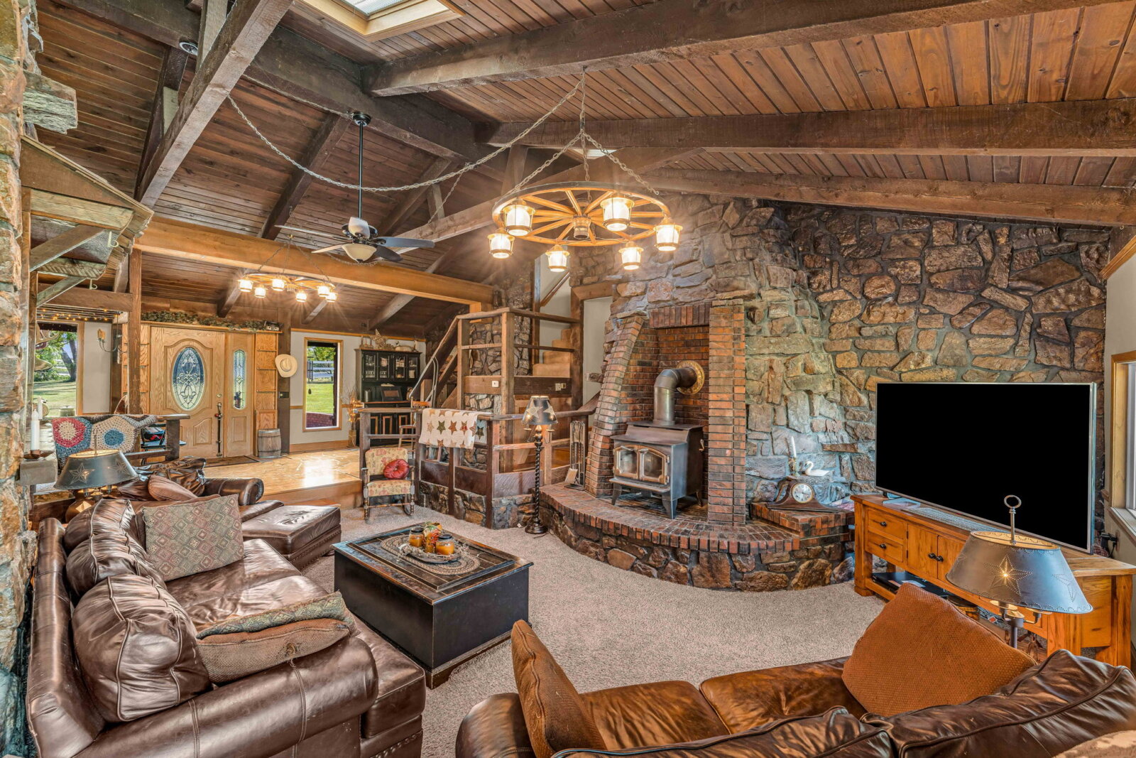 Yellowstone Ranch on the prairie! R&R awaits you! This custom built 4 bedroom, 2 bath home & equine property on nearly 10 acres is a picturesque retreat in rural Jefferson County, complete with one of a kind masonry features throughout the main living space, including a marble entry from the Topeka Capitol Building. The heart of the home is the large kitchen with additional spacious dining space and the family room with beautiful views overlooking the property and a wood-burning stove. The basement features an additional fireplace and storm shelter. Sip your coffee, watch the sunsets or star gaze on the home’s main level and master suite decks! Watch wildlife or go fishing on your nearly 2 acre aerated & stocked pond. Harvest fruit from your orchard which hosts a variety of fruit trees or hunt on your private property – a true outdoor paradise! The expanse of the property is a horse lover’s dream – with a well-appointed 6 stall horse barn including a brick & block tack room, 2 breakdowns and 1 foaling stall, brick-overlayed interior posts & arches, and large electric garage doors. Storybook white fencing with cross-fencing to 5 pastures and a hay field. In addition to the homes attached garage, an additional oversized detached garage features a workshop & hobby areas with plenty of storage for your ranch endeavors. Cameras on premises. Welcome home to your slice of country living dreams!